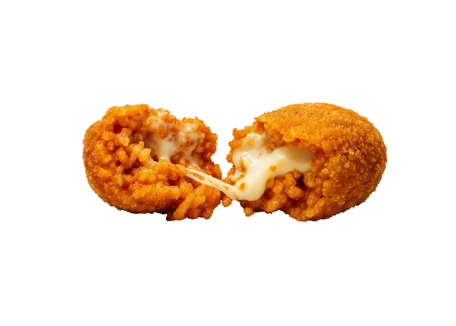 Los supplì, unas croquetas de arroz típicas de la cocina callejera de Roma, se caracterizan por su relleno de ragú de carne y mozzarella fundida, envuelto en arroz preparado al estilo risotto y una capa exterior crujiente de pan rallado.
