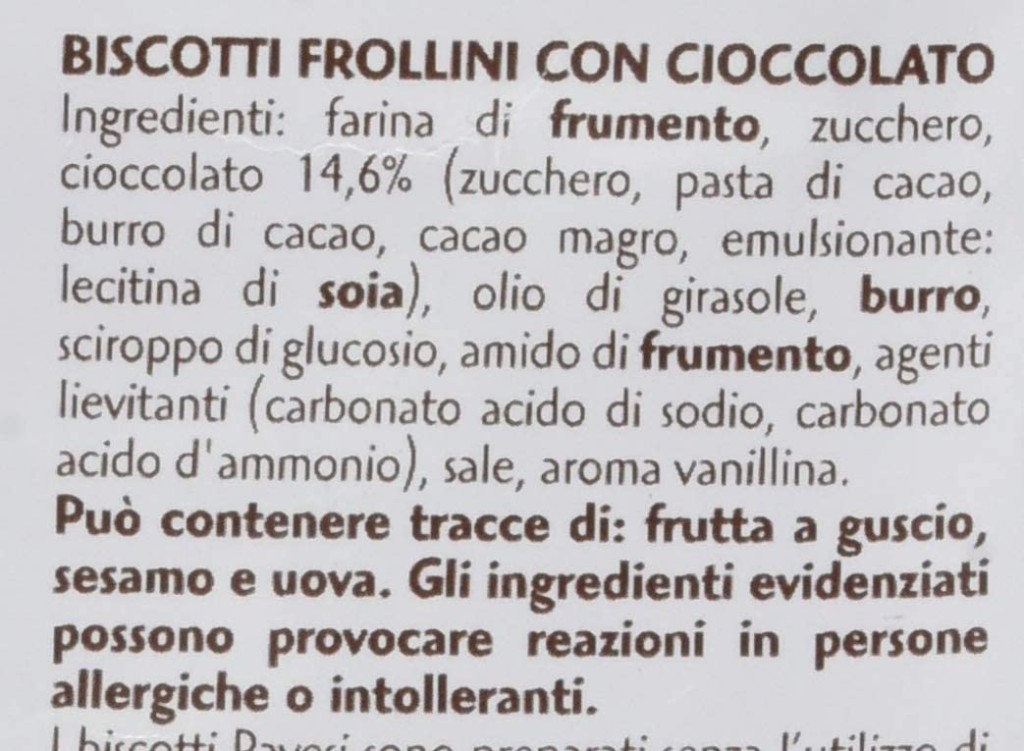 harina de trigo, azúcar, chocolate 14,6% (azúcar, masa de cacao, manteca de cacao, cacao desnatado, emulgente: lecitina de soja), aceite de girasol, mantequilla, jarabe de glucosa, almidón de trigo, gasificantes (carbonato ácido de sodio, carbonato ácido de amonio) , sal, aroma de vainillina.